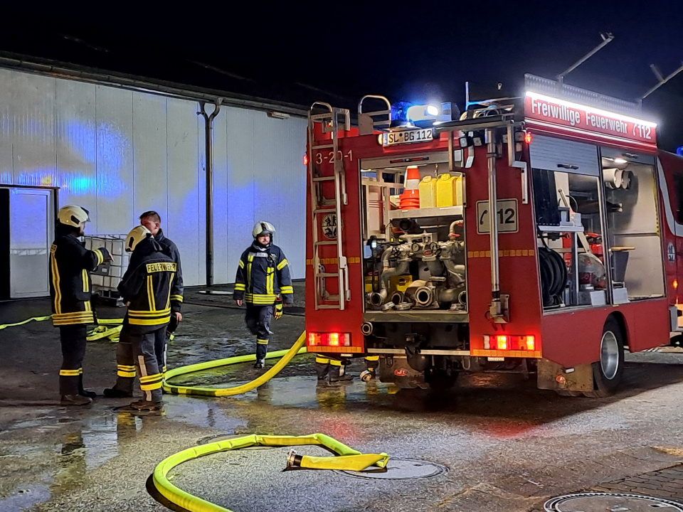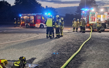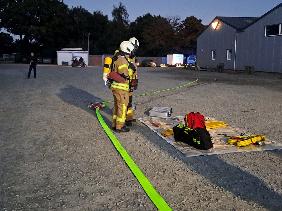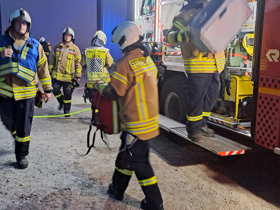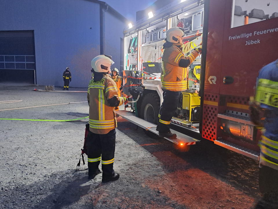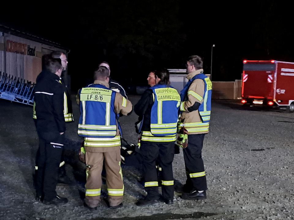 Am 30.09 2025 gingen abends die Sirenen in Bollingstedt, Gammellund, Jübek und Langstedt. Als Stichwort / Alarmierungsbenachrichtigung war nur bekannt: Feuer in einer Maschinenhalle bei der Firma Hand in Bollingstedt mit vermissten Personen. Sogleich machten sich die Einsatzkräfte auf den Weg. Bei Ankunft am „Einsatzort“ stellte sich relativ schnell heraus, dass es sich um eine größere Alarmübung handelte. Sinn und Zweck dieser Übung war es aber, die Zusammenarbeit mehrerer Wehren (hier sogar ämterübergreifend) zu üben. Jede Wehr bekam von der Einsatzleitung einen Abschnitt zugeteilt. Die Wasserversorgung musste aufgebaut werden, die Atemschutzgeräteträger (AGT) rüsteten sich aus und die ersten AGT Trupps gingen in das Gebäude auf der Suche nach den vermissten Personen. Weitere AGT Trupps standen als Sicherungstrupp bzw. Reserve bereit. Ein Schwerpunkt war die Koordination und Führung der Einsatzkräfte per Funk.