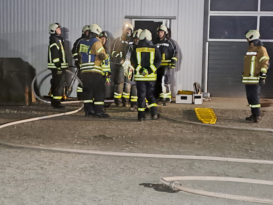 Im Anschluss wurden die teilnehmenden Kameraden und Kameradinnen in einer der großen Maschinenhallen noch mit Getränken und Bratwurst versorgt. Ortswehrführer Thomas Reese bedankte sich bei der Firma Hand für die Bewirtung, aber insbesondere auch dafür, dass sie das Gelände und die Räumlichkeiten für diese Übung zur Verfügung gestellt hat.