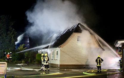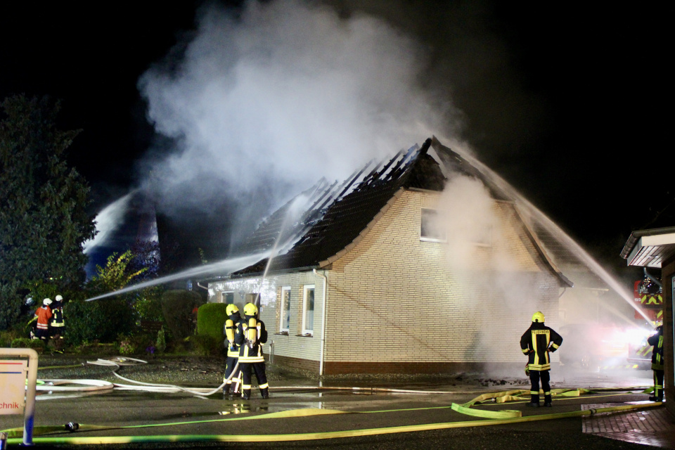 Als die ersten Einsatzkräfte eintrafen, schlugen bereits meterhohe Flammen aus dem Dach. „Ein