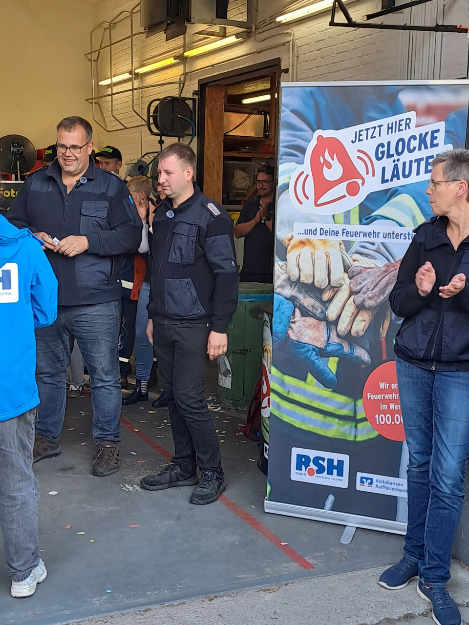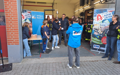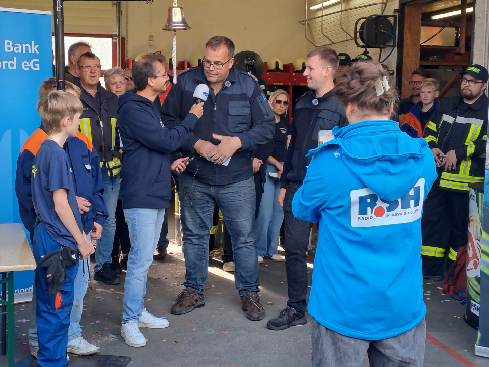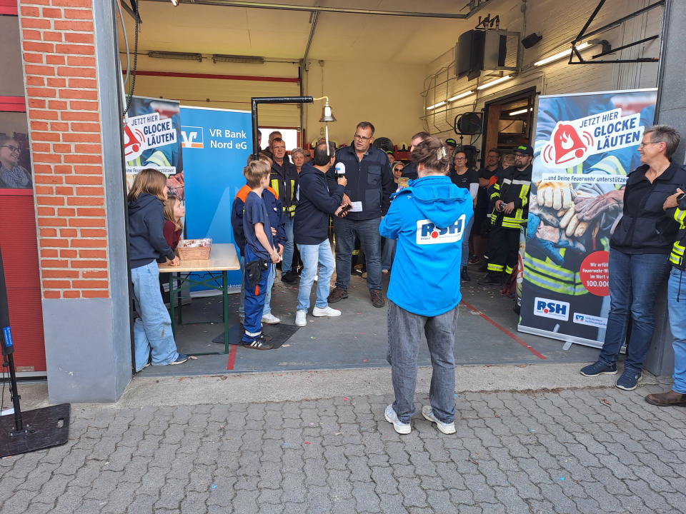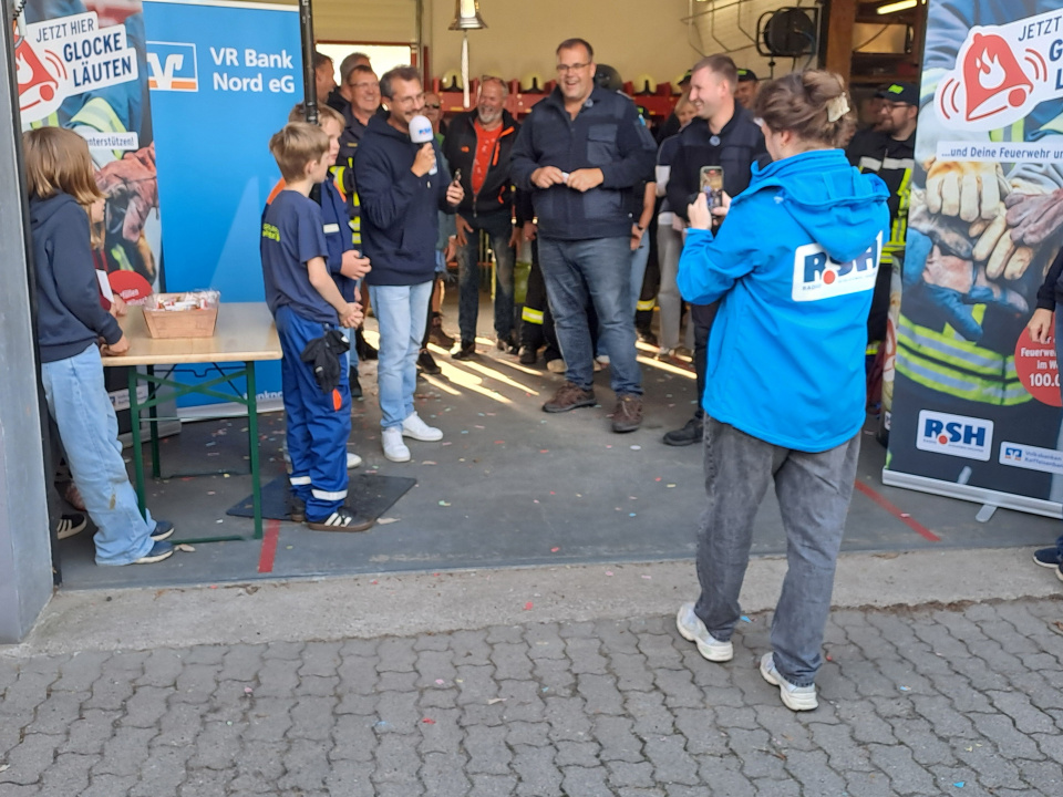 Die FFW Bollingstedt hatte sich um „Das große R.S.H. Feuerwehr-Läuten“ beworben, welches durch die Volks- und Raiffeisenbanken unterstützt wird, und wurde für die Teilnahme ausgewählt. R.S.H hatte den Termin für Mittwoch, den 17.09.2025, festgelegt und informierte die FFW Bollingstedt eine Woche zuvor. In dieser Vorbereitungswoche gab es viel für die FFW Bollingstedt zu planen (u.a. Personaleinteilung, Kuchenspenden organisieren, Veranstaltung bewerben, Feuerwehrgerätehaus aufräumen, u.v.m.). Kurze Videos wurden gedreht und veröffentlicht. Die Werbung erfolgte u.a. über die social media Kanäle, die allesamt heiß liefen. Alle Kameraden und Kameradinnen zogen an einem Strang. Auch Sponsoren wurden gesucht und gefunden. Die Bäckerei Hansen aus Langstedt stellte Brötchen und Laugengebäck und die Schlachterei Petersen aus Engbrück Bratwurst zur Verfügung. Maik Heidenreich hatte seine Fotobox aufgebaut, die gut genutzt wurde.