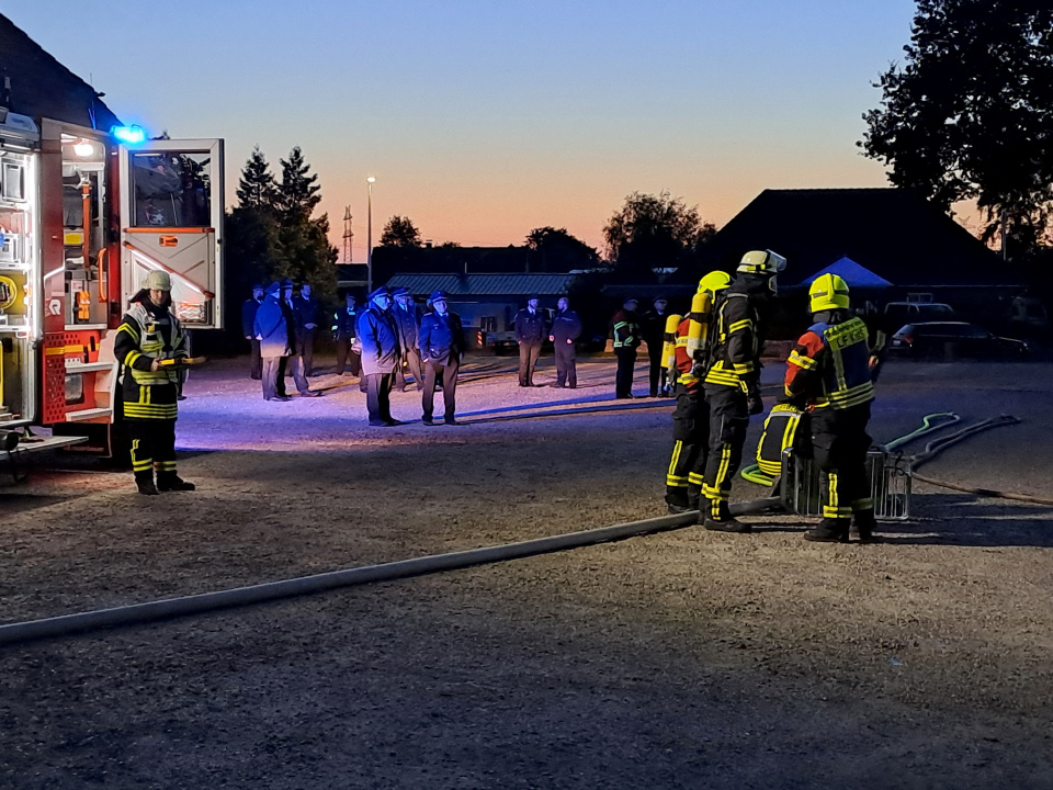 Nach den beiden Vorführungen ging es ins Schützenheim, wo sich erst einmal alle stärken konnten. Die Anspannung war verflogen. Im Anschluss hatten die Gäste das Wort. Kreisbrandmeister Mark Rücker, Amtswehrführer Michael Otremba, Lehrgangsleiter Thomas Reese und der Friedrichsauer Ortswehrführer, Finn Sierk, gingen in ihren Reden u.a. auf die Tätigkeiten, die Ausbildungen und die Zusammenarbeit der Feuerwehren ein mit dem Inhalt: „Ihr habt jetzt neben dem Fachwissen nunmehr Führungsverantwortung. Dazu gehört die Kommunikation und die Kameradschaftspflege innerhalb der Wehr. Redet stets miteinander. Die Feuerwehren benötigen Menschen für die unterschiedlichsten Tätigkeiten, dabei kommt der Position des Truppführers eine wichtige Bedeutung bei. Die Truppführer stehen beim Einsatz an der Spitze der Trupps und sind ggf. die zukünftigen Gruppen-, Zug- und Wehrführer“. Fachwart Horst Matthiesen kommentierte die beiden Abschlussübungen. Sein Fazit: Die Ausbilder haben sehr gute Arbeit geleistet. Er hatte wenig zu ergänzen.