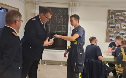 Zum Abschluss bedankte sich Thomas Reese bei der Friedrichsauer Wehr für die Zusammenarbeit. Dann händigte er die Ernennungsurkunden zur/zum Truppführerin/Truppführer aus. Der Kurs revanchierte sich mit einem kleinen Präsent bei den Ausbildern.