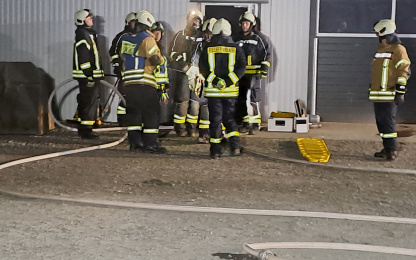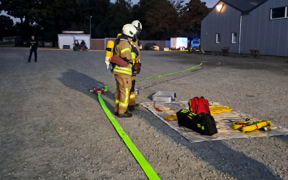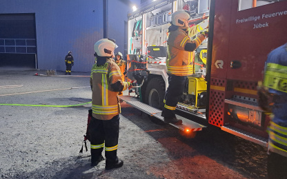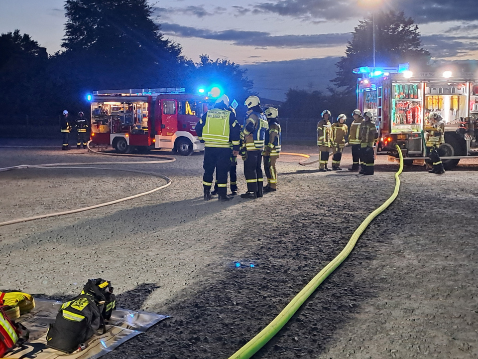 Am 30.09 2025 gingen abends die Sirenen in Bollingstedt, Gammellund, Jübek und Langstedt. Als Stichwort / Alarmierungsbenachrichtigung war nur bekannt: Feuer in einer Maschinenhalle bei der Firma Hand in Bollingstedt mit vermissten Personen. Sogleich machten sich die Einsatzkräfte auf den Weg. Bei Ankunft am „Einsatzort“ stellte sich relativ schnell heraus, dass es sich um eine größere Alarmübung handelte. Sinn und Zweck dieser Übung war es aber, die Zusammenarbeit mehrerer Wehren (hier sogar ämterübergreifend) zu üben. Jede Wehr bekam von der Einsatzleitung einen Abschnitt zugeteilt. Die Wasserversorgung musste aufgebaut werden, die Atemschutzgeräteträger (AGT) rüsteten sich aus und die ersten AGT Trupps gingen in das Gebäude auf der Suche nach den vermissten Personen. Weitere AGT Trupps standen als Sicherungstrupp bzw. Reserve bereit. Ein Schwerpunkt war die Koordination und Führung der Einsatzkräfte per Funk.