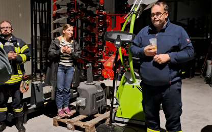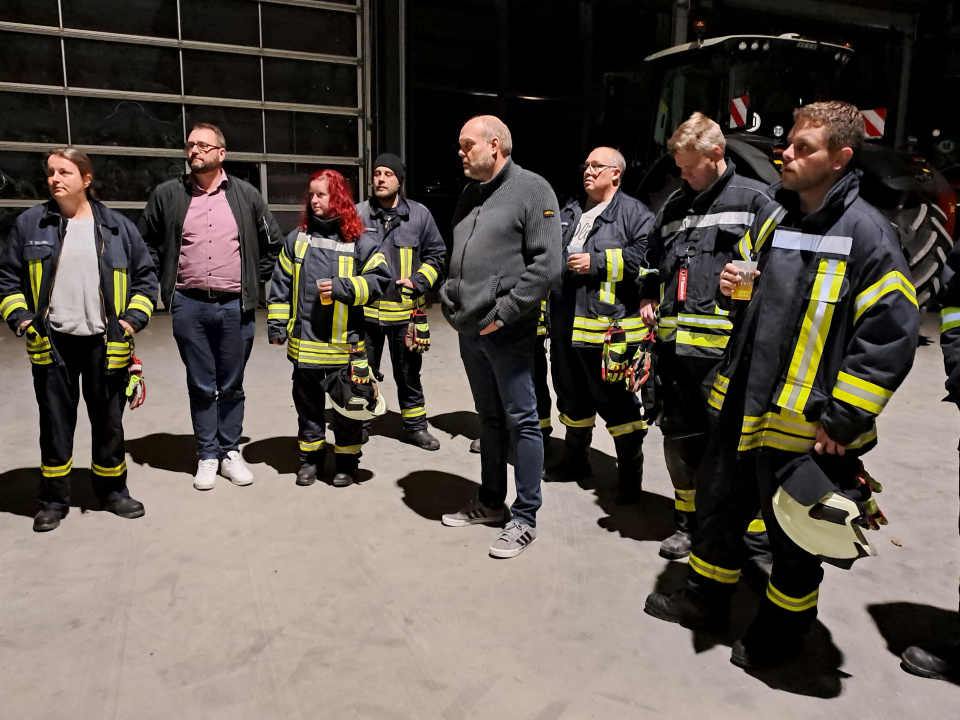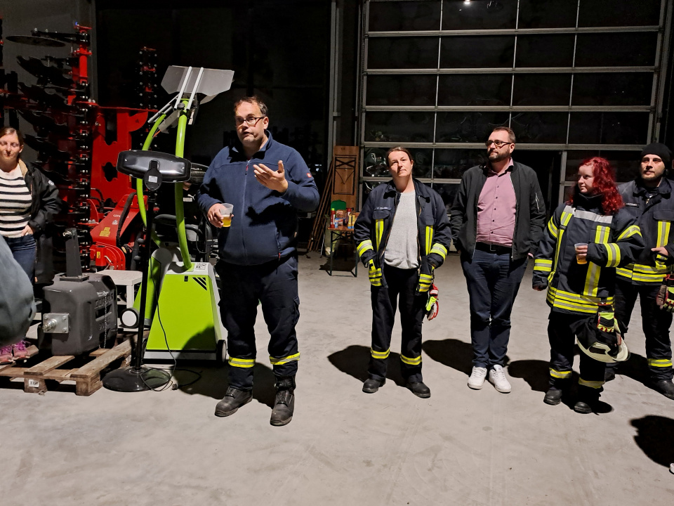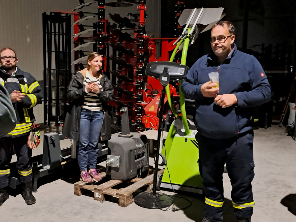 Im Anschluss wurden die teilnehmenden Kameraden und Kameradinnen in einer der großen Maschinenhallen noch mit Getränken und Bratwurst versorgt. Ortswehrführer Thomas Reese bedankte sich bei der Firma Hand für die Bewirtung, aber insbesondere auch dafür, dass sie das Gelände und die Räumlichkeiten für diese Übung zur Verfügung gestellt hat.