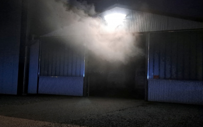 Um ein echtes Szenario darzustellen, war die große Maschinenhalle stark vernebelt, um somit die Sicht (analog wie bei einem echten Brand mit starker Rauchentwicklung) stark einzuschränken. Die vermissten Personen wurden schließlich gefunden, aus dem Gebäude getragen bzw. gerettet und dem Rettungsdienst übergeben. Allerdings war eine „vermisste Person“ eingeklemmt und musste mit Hilfe von Hebekissen befreit und gerettet werden.