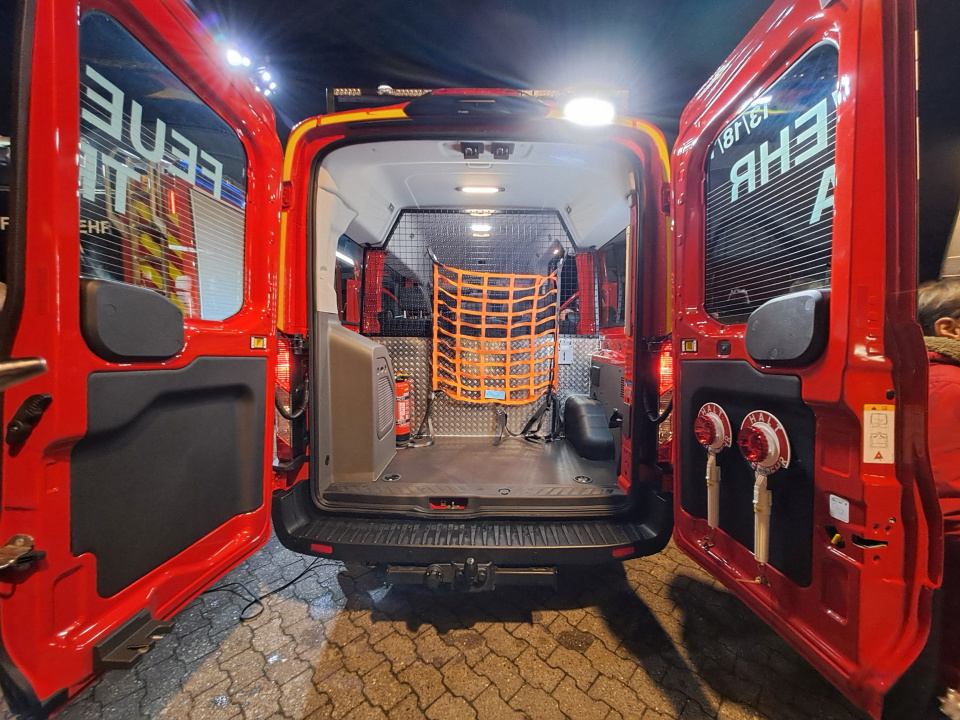 Rund 4 Jahre hat es von den ersten Plänen der Anschaffung bis zur jetzigen offiziellen Indienststellung gedauert. Das rd. T€ 70 teure Fahrzeug, welches mit einer Förderzusage des Kreisfeuerwehrverbandes SL-FL mit 30% unterstützt wurde, hat dafür aber viel zu bieten: 8 Plätze stehen für den Transport von Kameraden zum Einsatz oder für Fahrten der Jugendfeuerwehr zur Verfügung. Es kann für die Einsätze der First Responder mit entsprechendem Equipment eingesetzt werden. Als Fahrerlaubnis ist „nur“ die Führerscheinklasse B notwendig. Das Fahrzeug ist schnell, wendig und benötigt überall wenig Platz. Es kann für den Transport der Stiefelwaschanlage, für Wechselkleidungen, Sauerstoffflaschen, Feuerlöschern, Kälteanzügen und für das Floß zur Wasserrettung u.v.m. genutzt werden. Es ist mit einem iPad (gesponsert vom Steuerbüro Hauke Otzen) und einer Funkanlage ausgestattet. Somit ist das Fahrzeug eine sehr gute Ergänzung zu den bestehenden Einsatzfahrzeugen. Michael Nissen ging zum Abschluss seiner Rede noch einmal auf den großen Sucheinsatz im November an der Treene ein, wobei der MTW bereits gute Dienste geleistet hatte. Er dankte allen Wehren und Personen, die dabei waren und geholfen haben.