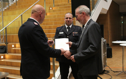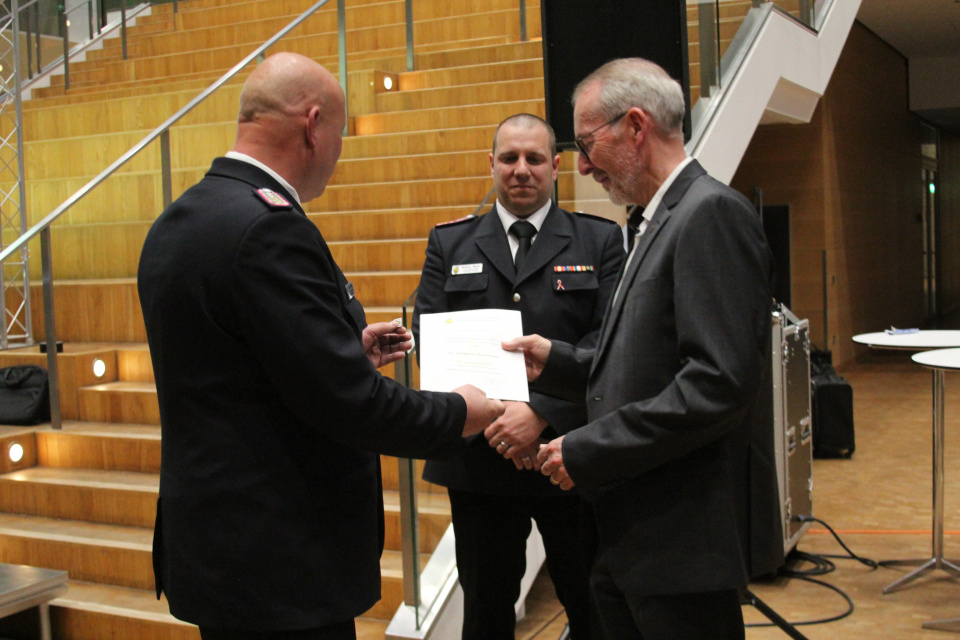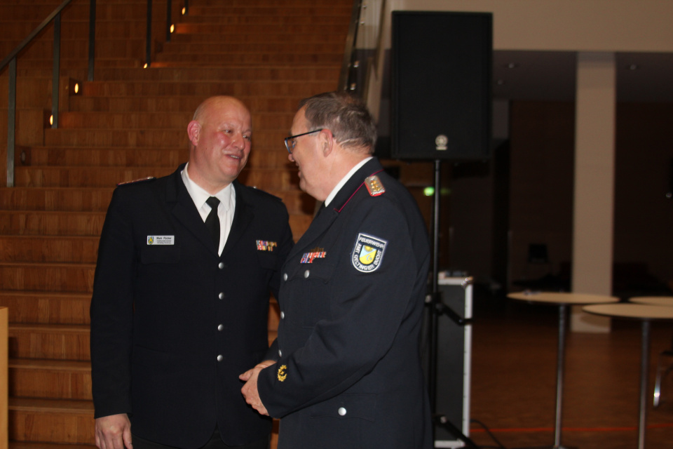 Im Bereich der Facharbeit wurden als Kreissicherheitsbeauftragter Peter Thomas Block und für die Ämter des Beauftragten für Großtierrettung Henrik Hansen und des Pressewartes Jan Ströhmer berufen. Ein Höhepunkt der Veranstaltung war die Überreichung der Ehrennadel des Kreisfeuerwehrverbandes durch Mark Rücker an den sichtlich überraschten Landrat Dr. Buschmann.