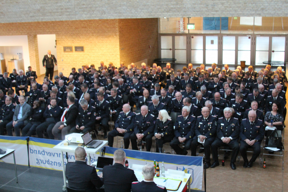 Am 24. April 2026 fand die jährliche Delegiertenversammlung des Kreisfeuerwehrverbandes Schleswig-Flensburg (KFV SL) in der AP Möller Skolen in Schleswig statt. Zu der Veranstaltung waren neben den ca. 210 Vertreterinnen und Vertretern der Feuerwehren des Kreises zahlreiche Gäste aus Politik, Verbänden und Blaulicht Organisationen eingeladen. Die Sitzung wurde um 19.00 Uhr vom Kreiswehrführer Mark Rücker mit der Begrüßung der Gäste eröffnet. Anwesend waren u. a. der Landrat des Kreises Schleswig-Flensburg, Dr. Wolfgang Buschmann und der Bürgermeister der Stadt Schleswig, Jonas Kähler, sowie der Landesbrandmeister Jörg Nero.