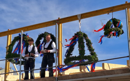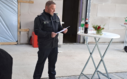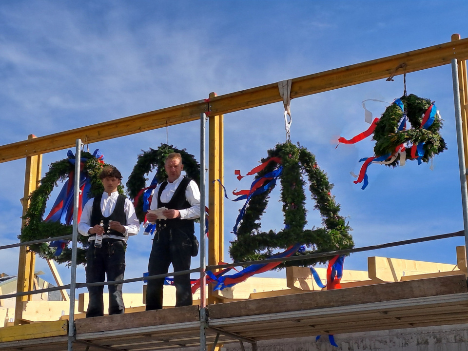 Am 16.04.2026 war es soweit. Die Gemeinde Schuby und die Freiwillige Feuerwehr Schuby konnten gemeinsam Richtfest im neuen Feuerwehrgerätehaus feiern. In ihrer Rede ließ Schuby´s Bürgermeisterin, Petra Schulze, die Vergangenheit noch einmal Revue passieren. Im November 2022 fasste die Gemeindevertretung den Beschluss, ein neues Gerätehaus zu bauen. Von November 2023 bis November 2024 wurde das B-Plan Verfahren mit Satzungsbeschluss durchgeführt. Im Juni 2025 folgte die Baugenehmigung und schon im August 2025 starteten die Erschließungsarbeiten. Der Hochbaubeginn startete im November 2025 und nun im April 2026 folgte das Richtfest. Die Fertigstellung ist Ende für 2026 geplant. Die beschriebene Entwicklung hört sich einfach an, jedoch bedarf es intensiver Arbeit, vielen Abstimmungen und diverser Kraftanstrengungen. So mussten die ehrenamtlichen Gemeinderatsmitglieder -stellvertretend sind hier die Bgm. Petra Schulze und der Bauausschussvorsitzende Dietmar Dollase genannt - als auch Schuby´s Wehrführer, Marco Kroymann-Meyer, sein Stellvertreter, Jan Chr. Mielke, und weitere Personen sich u.a. in viele Bauthemen einarbeiten. Gute Unterstützung hatten sie durch das Amt Arensharde, das Planungsbüro Dogs, das Büro Klatt, das Büro Haase und Reimer, das Büro Springer (Bauleitplanung), das Unternehmen Boysen, die Firma Stahlbau Hagge, die SH-Netz und weitere Firmen und Personen. Es wurde Hand in Hand gearbeitet. Für auftretende Probleme wurden Lösungen gesucht und gefunden. Wehrführer Marco Kroymann-Meyer schloss sich dem in seiner Rede an und freute sich schon jetzt auf den Einzug und dankte der Gemeinde.